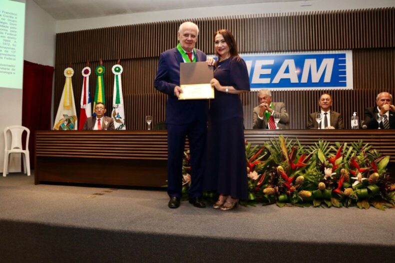 Durante a solenidade, Serafim foi condecorado com a Medalha do Mérito Empresarial J.G. Araújo, uma das maiores honrarias concedidas pela ACA a personalidades que têm papel destacado no fortalecimento econômico do Amazonas.