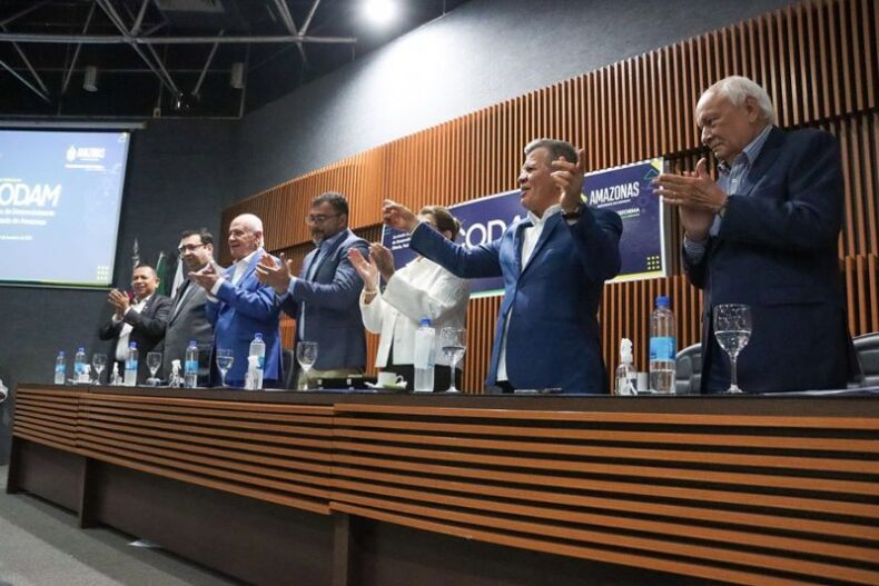 A Suframa participou da 312ª Reunião do Conselho de Desenvolvimento do Amazonas (Codam), realizada nesta quinta-feira (20) no auditório do Senai, bairro do Distrito Industrial, zona Sul de Manaus. A Autarquia foi representada pelo superintendente Bosco Saraiva, no evento que celebrou o aumento no número de empregos e no próprio faturamento do Polo Industrial (PIM). Na ocasião, o superintendente agradeceu pelos parabéns que foi cantado pelos presentes em referência à passagem dos 58 anos da Superintendência da Zona Franca de Manaus (Suframa), completados no próximo dia 28.
