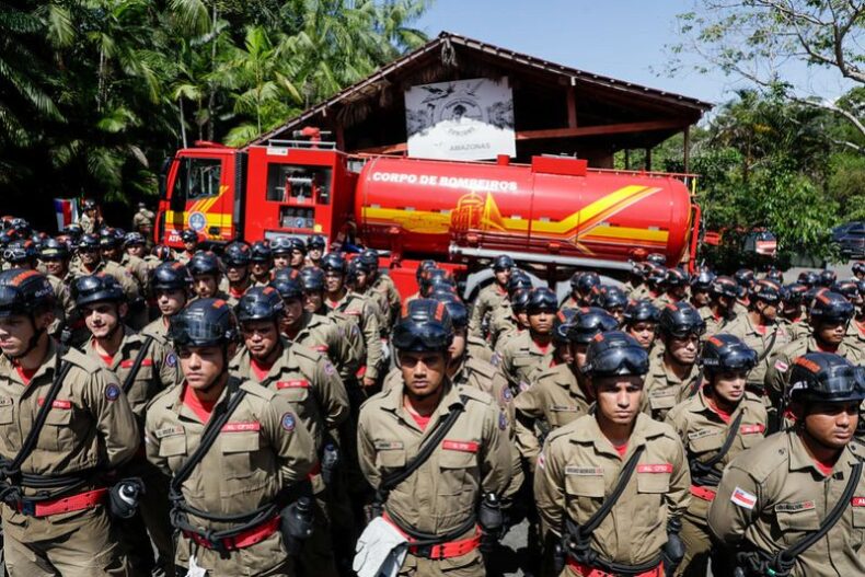 Mais de 250 militares do Corpo de Bombeiros Militar do Amazonas (CBMAM) participaram, na sexta-feira (18/07), de um simulado operacional de atendimento a uma ocorrência de incêndio florestal, realizado no Parque Estadual Sumaúma, no bairro Cidade Nova, zona norte de Manaus. O objetivo foi reforçar o treinamento dos bombeiros para atuação durante o período de estiagem.