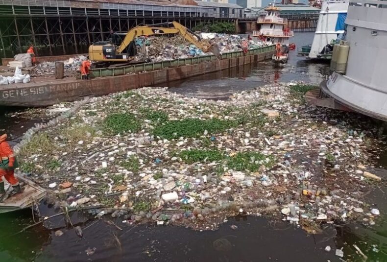 No período da tarde, os trabalhos aconteceram no porto de Manaus, onde foi realizada a coleta do lixo por meio de redes de contenção presas em botes e, em seguida, executada a remoção com retroescavadeira.